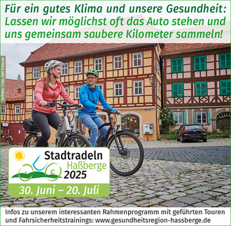 "Ich bin wie alle Jahre dabei und würde mich sehr darüber freuen, wenn viele Bürgerinnen und Bürger aus Ebern diese Kampagne unterstützen und sich aktiv beteiligen", fordert Bürgermeister Jürgen Hennemann auf. Es wäre daher schön, wenn viele Bürgerinnen und Bürger mitmachen und Ebern seinen Spitzenplatz bei den gefahrenen Kilometern behaupten oder noch ausbauen könnte.