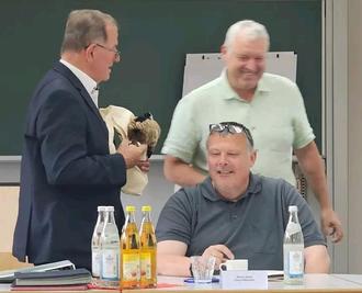 Auch langjährige Angehörige des Zweckverbandes, darunter der Vorsitzende Erwin Dotzel (CSU), wurden verabschiedet. Bürgermeister Jürgen Hennemann überreichte dem Vorsitzenden zur Erinnerung an Ebern eine Tasse, die Stadtschokolade und ein Plüschtier Lützel, verbunden mit besten Wünschen für die Zukunft und dem Wunsch ihn auch nach seiner Amtszeit in Ebern begrüßen zu können.