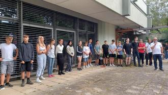 Zum Schulabschluss konnte Bürgermeister Jürgen Hennemann 11 Mittelschülern, die Schülerlotsendienst in der Gymnasiumstraße leisten, den Dank der Stadt überbringen und ein Geschenk (Karten für den Eintritt ins Freibad) überreichen. Er dankte den Schülerinnen und Schülern für ihren ehrenamtlichen Einsatz jeden Morgen zur Schulwegsicherheit beizutragen. "Dieser Einsatz für andere ist wichtig, damit unser Zusammenleben klappt", so der Bürgermeister. Wenn jeder ein klein wenig beitrage, funktioniert unsere Gesellschaft. Auch wurden die vielen freiwilligen Helfer im Schulsanitätsdienst unter der Leitung von Wolfgang Amend ausgezeichnet (im Bild mit Schulleiter Philipp Arnold). Sie stehen gut ausgebildet in der Schule und vor allem in den Pausen zur Verfügung, um Erste Hilfe zu leisten. Außerdem zähle die Ausbildung in erster Hilfe für den Führerschein, wie Ausbilder Amend erläuterte. Es lohne sich also mitzumachen.