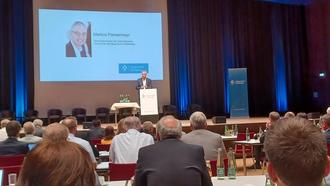 Mehrere unterschiedliche Krisen verschärfen sich derzeit gegenseitig, Probleme vermischen sich, Unsicherheiten wachsen. Dies macht den Menschen Sorge und beschäftigt die Politik auf allen Ebenen, sagt der Vorsitzende des Bayerischen Städtetags, Straubings Oberbürgermeister Markus Pannermayr in seiner Rede: "Vieles von dem, was in der Welt passiert, steht letztlich zur Lösung auf kommunaler Ebene an. Die Menschen waren gewohnt, dass bei Problemen zügig eine Lösung zur Hand war. Doch auf viele komplexe Fragen - Energiekrise und Klimawandel, Digitalisierung, demografischer Wandel und Integration - gibt es keine schnelle und einfache Antwort. Ressourcen werden knapper und weniger Personal steht zur Bewältigung von Aufgaben zur Verfügung."
