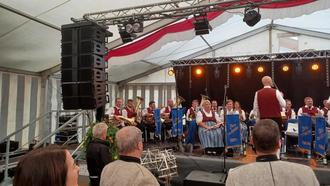 Zur Begrüßung der Eberner Gäste ließ es sich Bürgermeister Karl Eberharter, trotz verspäteter Ankunft des Eberner Busses und bevorstehender Eröffnung des Festes, nicht nehmen, alle im Bus willkommen zu heißen. Mit Schwung der Blasmusik Jennbach begann im gut gefüllten Zelt das Jubiläumsfest. Bürgermeister Karl Eberharter und sein Kollege Jürgen Hennemann aus Ebern stellten in ihren Grußworten die seit über 40 Jahren bestehende Partnerschaft zwischen den beiden Gemeinden heraus. "Leider konnten wir das 40-Jährige 2020 wegen Corona nicht feiern und wir konnten nicht aus zu eink komma", bedauerte Karl Eberharter in tirolerisch. Bürgermeister Jürgen Hennemann ergänzte, dass das Feiern nachzuholen sei. "Deswegen sind wir in starker Besetzung mit dem Blasorchester nach Strass zu unseren Freunden gekommen." Es sei wichtig, sich auszutauschen und die Menschen zusammenzubringen. Das gelinge in der Partnerschaft Ebern-Strass immer besser, durch Kontakte von immer mehr Vereinen, so Hennemann.