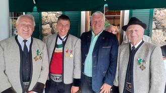 Drei Generationen Bürgermeister aus Strass sahen sich gemeinsam mit Bürgermeister Jürgen Hennemann den Festzug der Musikkapellen an. Links: Altbürgermeister Klaus Knapp, Vorgänger von Karl Eberharter, 2. von links, und rechts Vor-Vorgänger Altbürgermeister Ludwig Schnirzer.