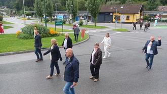 Zum Jubiläum hat Hans Pfandler eine sehenswerte und interessante Ausstellung mit vielen Bildern aus den 100 Jahren der Blasmusik zusammengestellt, die für alle Festbesucher im Gemeindesitzungssaal zu sehen war. Das nutzten Bürgermeister Jürgen Hennemann und die Eberner Stadträte am Samstagmorgen gemeinsam mit den Strasser Gemeinderäten und Bürgermeister Karl Eberharter. Er stellte im Schulungsraum der Feuerwehr die aktuellen Maßnahmen in der Gemeinde vor. Das größte Projekt, das für viele Diskussionen sorgt, ist der geplante Hochwasserschutz vor Inn und Ziller. Dazu sollen Hochwasserdämme erstellt werden, die den Ort schützen und größere Wasserrückhaltebecken bilden. Diskussion gebe es wegen des Flächenverbrauches landwirtschaftlicher Nutzflächen, die dann wegen Dammanschüttung schwieriger zu bearbeiten seien. Er erläuterte die Anstrengungen der Gemeinde bei der Sicherstellung der eigenen Wasserversorgung. Die Sanierung der Brunnen laufe. Da man im Winter Wasserprobleme habe, müsse hier gehandelt werden.
