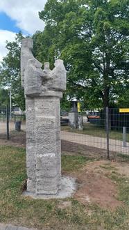 Seit 2018 wurde das Landratsamt auf diesen Schandfleck angesprochen. Erst als jetzt die BR-Radltour im Anrollen war, ging alles ganz schnell. Mitte Juli ist die Stele wieder zurückgekehrt. Eine Bildhauerfirma aus dem Kreis hat sie geschickt restauriert. Das wurde möglich, weil Hausmeister Joachim Heim die abgeschlagenen Teile glücklicherweise geborgen und aufbewahrt hatte. Bürgermeister Jürgen Hennemann freut sich, dass er den bayerischen Radlern mit ihr ein weiteres Schmuckstück in der Stadt vorstellen kann.