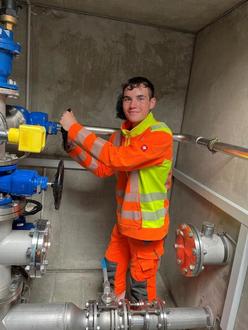Als er dann das Ausbildungsangebot für Fachkraft für Wasserversorgungstechnik im Mitteilungsblatt gesehen hatte, stand sein Beschluss fest, sich bei der Stadt Ebern zu bewerben. Freiwillig absolvierte er ein weiteres Praktikum in der Wasserabteilung, bei dem er wichtige Elemente der Wasserversorgung kennenlernte. Auch nach dem zweiten Praktikum war er sich sicher; das Team und die Arbeit passt zu ihm und seit Anfang September lernt er bei der Stadt Ebern seinen Traumberuf, um in Zukunft zu einer sicheren Wasserversorgung beizutragen. Die 3-jährige Ausbildung findet in Präsenz im Wasserwerk Ebern statt. Die Berufsschule für Fachkräfte für Wasserversorgungstechnik befindet sich in Lauingen an der Donau und findet als Blockunterricht statt.
