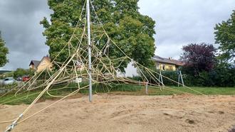 Der verlegte Spielplatz an der Beethovenstraße nimmt Formen an. Der Bauhof hat neben den versetzten Spielgeräten vom bisherigen Spielplatz auf der anderen Straßenseite ein großes Kletternetz aufgestellt. "So etwas haben wir noch nicht im Stadtgebiet und bereichert unsere Spielplatzlandschaft," freut sich Bürgermeister Jürgen Hennemann. Die Anlage und Gestaltung des Spielplatzes hat der Bauhof in Eigenregie vorgenommen und hervorragend umgesetzt. "Das ist wieder ein weiteres Projekt, das die Fachleute unseres städtischen Bauhofes gut abgewickelt haben", sagt Hennemann zufrieden. Das zusätzliche Spielgerät wird über die Regionalfördermittel der Baunach-Allianz gefördert. jh