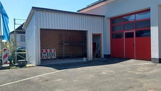 Kostenangebote beliefen sich in Stahlbauweise, aber auch als Holzständer, in Höhe von 80.000 Euro. „Da waren wir schockiert“, so Bürgermeister Hennemann, dass dieser Anbau so teuer kommen sollte. Nach internen Gesprächen zwischen Bauamt und Kommandanten David Pfeuffer, erklärte sich die Feuerwehr Ebern bereit, den Bau in Eigenleistung zu erstellen, auch um rechtzeitig den Anbau fertig zu haben.