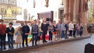 Der Erntedankgottesdienst am 01.10.2023 in der herrlich geschmückten Stadtpfarrkirche St. Laurentius wurde von den Kindern und Erziehern des Städtischen Kindergartens Regenbogen mitgestaltet und stand ganz unter dem Thema "reiche Ernte, für die wir Gott dankbar sind". Zu Beginn des Gottesdienstes stellte sich die Gemeindereferentin Anna Klug vor, die seit August in der katholischen Gemeinde Ebern für alles rund um die Familie zuständig ist. Die Kinder haben die Gottesdienstbesucher lauthals mit einem Lied begrüßt, dabei wurden sie von Stefan Reinwand auf der Gitarre begleitet. Im Anschluss an ein Gebet und die Lesung, haben die Kinder gemeinsam mit ihren Erziehern vorgetragen, für welche Gaben Gottes sie dankbar sind: Die Sonne, die den Tag erleuchtet und uns wärmt - Das Wasser, in dem wir uns im Sommer abkühlen können und das alle Pflanzen erfrischt - Die Blumen, die so herrlich duften und mit denen wir unsere Feste schmücken - Der Ackerboden, aus dem Pflanzen und Bäume wachsen - Die Tomate, die als Ketchup allen Kindern schmeckt - Die Kartoffel, aus der leckere Pommes werden - und auch für das Brot, das leider manchmal in der Brotdose liegen gelassen oder sogar weggeschmissen wird. Es wurde das Bewusstsein gestärkt, gut und verantwortungsbewusst mit Lebensmitteln umzugehen. Die Fürbitten wurden von den Erzieherinnen und Erziehern vorgetragen. Nach weiteren Liedern, dem Vater Unser, dem Schlussgebet und einem Mitmach-Segen war der Gottesdienst beendet. Die anwesenden Gottesdienstgäste konnten das herrliche Wetter im Anschluss auf der Direktvermarktermeile am Eberner Marktplatz genießen und wie im Gottesdienst thematisiert, Gottes Gaben in Form von Kartoffelspießen, Crepes, Salaten und vielem mehr kosten.