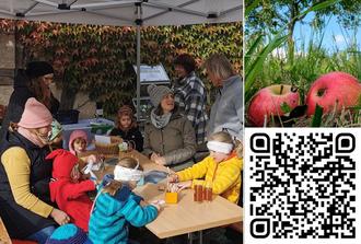 Der Apfelwickler war auch das Thema am Erlebnis- und Mitmachstand zum 30. Apfelfest der BUND-Ortsgruppe in Ebern. Gemeinsam hatten Daniela Berninger (Leiterin des Waldkindergartens) und Sabine Fuchs (Managerin für Biodiversität der Baunach-Allianz) ein kreatives Angebot für Kinder vorbereitet. Mit Farbe und Naturmaterialien entwarfen kleine Künstler tolle, bunte Schmetterlinge. Bei einem Blick durch ein Binokular konnten kleine und große Besucher die Schuppenstruktur eines Schmetterlingsflügels betrachten. Außerdem berichtete „Cydonia“ die Schmetterlingsdame über die Entwicklung ihrer Kinder bis hin zum fertigen Falter.