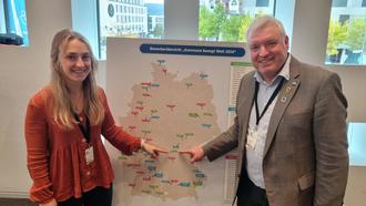 Ebern hat sich beworben. Jürgen Hennemann und Celina Hübenthal zeigen die Teilnahme anhand einer Deutschlandkarte.