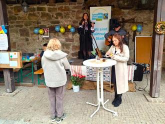 Die Musik vom ukrainischen Duo TetJANa verlieh dem Fest eine besondere Atmosphäre und sorgte für Stimmung - selbst noch, als viele Stände längst leergegessen waren. Auch die syrischen Klänge von Mohamad Tadfi begeisterten die Besuchenden. Bürgermeister Jürgen Hennemann bedankte sich in seinem Grußwort bei den zahlreichen Helfenden für ihr Engagement und betonte: „Dies ist ein Fest, wo wir alle zusammenkommen. Ob geflohen, zugezogen oder hier geboren - wir alle sind Ebern“.