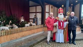 Am Eberner Weihnachtsmarkt, dem 1. Advent, konnten sich der Nikolaus und Bürgermeister Jürgen Hennemann das Bild Verkündigung ansehen und "Krippenmeister" Eberhard Wohl bescheinigen, dass es wieder ein perfekter Aufbau ist.
