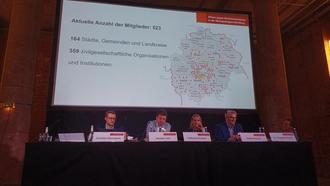 Stephan Doll, Vorsitzender der Allianz gegen Rechtsextremismus, eröffnet die 17. Mitgliederversammlung, die an einem symbolträchtigen Ort stattfand: In der Säulenhalle des Dokumentationszentrums Reichsparteitagsgelände in Nürnberg. "Dort wo noch bis vor 80 Jahren beispiellose Verbrechen gegen die Menschlichkeit durchgeführt wurden, tagt heute das bundesweit größte Bündnis gegen Rechtsextremismus. Das ist ein starkes Zeichen!" Für die Stadt Ebern nahm Bürgermeister Jürgen Hennemann teil. Er zeigte sich beeindruckt von dem Ort der Veranstaltung und der Solidarität und dem Zusammenhalt in der Metropolregion, in der Allianz. "Es lohnt sich für die Demokratie und die Menschenrechte einzutreten, und klare Kante gegen die extreme Rechte zeigen," teilt Hennemann die Auffassung der Teilnehmer. Jeder könne sich in seinem Wirkungsbereich einbringen und etwas für unsere Gesellschaft tun.