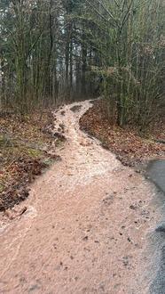 An der Hauptleitung vom Hochbehälter am Freibad ist es am ersten Adventswochenende zu einem Rohrbruch gekommen, der durch unsere Fachleute vom Wasserwerk und städtischen Bauhof noch am gleichen Tag behoben werden konnte. Das Wasser trat in großer Menge aus und lief aus dem Wald am Freibad, wie ein neu entstandener Wildbach. Auf der Losbergstraße entstand bis zum Abstellen des Wassers ein Fluss.