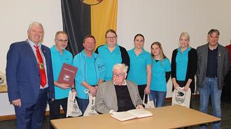 Walter Ullrich kümmert sich in all den Jahren um die Musiknacht, ein erfolgreiches Event in Ebern. Andrea Meister, Simone Bastian und Ants Lohmus trugen sich stellvertretend für alle Verantwortlichen in das Gästebuch der Stadt Ebern ein.