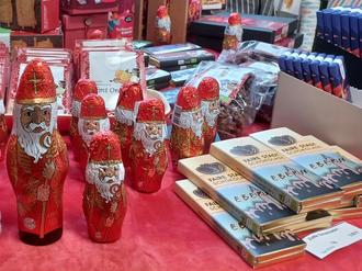 Nikoläuse neben der Stadtschokolade, alles mit Kakao aus fairen Handel im "EIne Welt Laden"