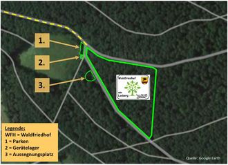 Ein Arbeitskreis des Stadtrates hat ein Konzept ausgearbeitet. Der geplante städtische Waldfriedhof befindet sich in einem ruhigen Waldstück, etwa 500 Meter vom städtischen Freibad entfernt, und soll als weiterer städtischer Friedhof betrieben werden.