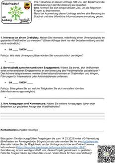 Im Rahmen der Planung eines städtischen Waldfriedhofes am Losberg möchten wir Ihre Meinung und Ihr Interesse einholen. Der Stadtrat wird daraufhin eine Entscheidung treffen.