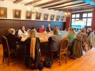 Zum Mitglieder-Meeting der Deutschen Fachwerkstraße Regionalstrecke Franken konnte Jürgen Hennemann als Regionalstreckensprecher im voll besetzten Sitzungszimmer im historischen Rathaus in Ebern fast alle Mitglieder der Regionalstrecke Franken und die Vertreterinnen des Tourismus Haßberge begrüßen. Susanne Volkheimer und Helen Zwinkmann stellten zusammen mit Bürgermeister Jürgen Hennemann die Aktivitäten des vergangenen Jahres dar. Fachwerkführungen, Veranstaltungen zum Tag des Fachwerks, Vernetzung im Tourismus und Präsenz auf Messen waren Themen. Nach einer kurzen Vorstellung der Stadt Ebern wurde die Notwendigkeit eines guten und umfassenden Social Media Marketings (SMM) aller Mitglieder besprochen, um hier auch die Fachwerkstraße Franken zu verlinken und weiter bekannt zu machen. Zurzeit nutzt man soziale Netzwerke wie Instagram, TikTok, LinkedIn und Facebook, um die Bekanntheit zu steigern. Das solle durch gezielte Posts aus den einzelnen Mitgliedsstädten erfolgen und wird durch eine Influencerin „Ninas Fachwerkliebe“ unterstützt, die von der Geschäftsstelle der Deutschen Fachwerkstraße beauftragt ist und die Orte nach und nach bereist und darstellt, erläutert Volker Holzberg von der Deutschen Fachwerkstraße. Für das Jahr 2026 sind gemeinsame Aktionen am Tag des Fachwerks und Fachwerkstadtführungen geplant. Ein gemeinsamer Auftritt ist zum Tag des Fachwerks am Sonntag, 31.05.2026, mit einer verbindenden Fahrradtour von Fachwerkort zu Fachwerkort vorgesehen. Zum Abschluss der Sitzung stellte Kreisheimatpflegerin Christiane Tangermann in einem sehr interessanten Vortrag das Rathaus Ebern, dessen Fachwerkbesonderheiten, die Nutzung und die Geschichte dar. BE/JH