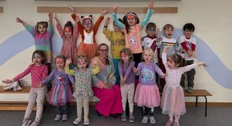In der Woche vor Fasching durften unsere Kinder sich jeden Tag zu einem anderen Motto anziehen und verkleiden (mit Kopfbedeckung, farbenfroh, gewühlt in Mamas und Papas Kleiderschrank und im Schlafanzug – aus dem Bett in die Kita). Am Mittwoch unterstützte uns Kornelia Jäger beim Schminken der Kinder, um sie richtig farbenfroh und bunt zu gestalten.