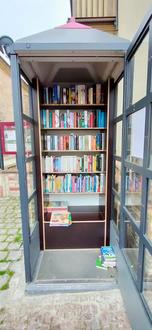 Die Bücherzelle in Ebern befindet sich seit 2019 direkt neben der Kirche auf dem alten Standort der Telefonzelle. Sie wird sehr gut angenommen und ist auch kaum mehr wegzudenken.