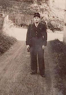 Polizeibeamter im Jahr 1949 mit der damaligen Uniform.