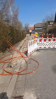 Diese kostenfreie Verlegung von der Grundstücksgrenze bis in den Hausanschlussraum erfolgt jedoch nur, wenn ein Vertrag für Glasfaser mit der Telekom bis zum Beginn der Bauarbeiten im jeweiligen Straßenzug abgeschlossen wurde.