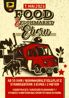Am 7. Mai 2023 findet ab 10 Uhr am Wohnmobilstellplatz in Ebern der Food- & Flohmarkt Ebern statt. Hier treffen sich Genießer und Schnäppchenjäger gleichermaßen, um sich kulinarisch verwöhnen zu lassen und nach Schnäppchen zu suchen.