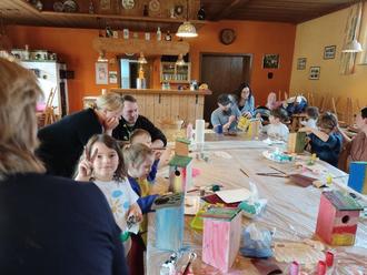 Mit Begeisterung waren die Kinder aus Albersdorf bei der Sache, als sie zusammen mit ihren Eltern Vogelnistkästen mit bunten Farben versahen.