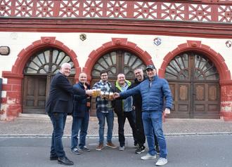 Am Samstag, 20. April, steigt das 6. Genussfestival rund ums heimische Bier auf dem Marktplatz in Ebern; bei schlechtem Wetter in der Rathaushalle. Auf viele Besucher freuen sich (von links): Bürgermeister Jürgen Hennemann sowie die Vertreter der Brauereien Gunther Hartleb, Max Göller, Helmut Bayer und die Kommunenbrauer Stefan Heinisch und Berthold Geuß aus Dörflis. Auf dem Bild fehlen die Brauerei Raab und die Kommunenbrauer aus Brünn.