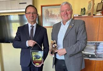 Nach 25 Jahren des Schüleraustauschs zwischen dem Friedrich-Rückert-Gymnasium (FRG) und dem Karol-Miarka-Lyzeum in Żory war es Zeit, einen offiziellen Besuch beim Bürgermeister von Zory vorzunehmen. Bürgermeister Jürgen Hennemann begleitete für 3 Tage die Schülerinnen und Schüler des FRG beim Gegenbesuch nach Polen, nachdem im Oktober bereits eine polnische Schülergruppe das 25-jährige Jubiläum in Ebern gefeiert hatte. Der überaus herzliche Empfang an der Schule durch die Schulleitung stimmte auf einen erlebnisreichen Besuch ein. Beim offiziellen Besuch beim Oberbürgermeister Waldemar Socha, dort Stadtpräsident, der an der Spitze der Verwaltung steht, wurden die aktuellen Probleme ausgetauscht. Diese ähneln sich, was die unzureichende Finanzierung der Gemeinden angehe. Man sei auf Fördermittel und Projektprogramme angewiesen. Auch fehlten Wohnungen. Bei der rasanten Entwicklung der Stadt, die nach dem 2. Weltkrieg um das Zehnfache gewachsen ist, ist dies kein Wunder. Heute sind es 60.000 Einwohner. Waldemar Socha ist seit 1998 im Amt und wurde am Sonntag vor dem Termin des Bürgermeisters zum 5. Mal mit absoluter Mehrheit wiedergewählt. Jürgen Hennemann konnte zur Wiederwahl gratulieren. Der Oberbürgermeister hat die Stadt Zory (Sohrau) zur modernen Stadt mit viel EU Fördermitteln ausgebaut, wie er sagte. Auch habe man in der Stadt über 5000 ukrainische Flüchtlinge aufgenommen, die vielfach in Beschäftigung sind. Beide Bürgermeister sind stolz auf den bereits 25 Jahre andauernden Schüleraustausch und sprachen sich für weitere Unterstützung und Fortsetzung aus, was die zur Übersetzung begleitende Deutschlehrerin Barbara Barglik und Hauptverantwortliche für den Austausch auf polnischer Seite sehr freute. Nach Austausch von Geschenken hat Bürgermeister Jürgen Hennemann seinen Amtskollegen zum Besuch nach Ebern eingeladen. Neben der Teilnahme an Besichtigungen in Zory in dem modernen Heimatmuseum, einem Schloss mit Einblicken in die polnisch-schlesischen Trachten und Volkstänze, wurde die Infrastruktur (moderner Busbahnhof und kostenloser Busverkehr, großes Büchereizentrum) und der Marktplatz der Stadt in Augenschein genommen.