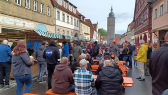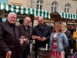 Gut besucht war das Bierfest in Ebern, trotz des wechselhaften Wetters. Zur Eröffnung durch Landrat Schneider und Bürgermeister Hennemann kam neben der ehemaligen Bierprinzessin Kerstin Friedrich auch der Hauptgeschäftsführer des bayerischen Brauerbundes Lothar Ebberts. Dieser lobte die Veranstaltung und die Biere der Braugemeinschaften aus den kommunalen Brauhäusern. Das Rathaus war unter den Klängen des Blasorchesters Ebern immer gut besucht. Die Verpflegung wurde durch Eberner Betriebe gewährleistet. Somit war das Gelingen des Festes gesichert. Wie Bürgermeister Jürgen Hennemann in seiner Eröffnungsrede sagte: "Die drei fränkischen B - Bier, Bratwurst und Blasmusik, dann gelingt ein Fest in Franken." JH