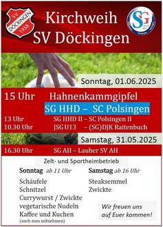 KIRCHWEIHSONNTAG, der Erste gegen den Zweiten, beide aus einer Gemeinde und der Sieger steigt auf – mehr Spannung geht nicht, kommt und unterstützt die SG HHD!!!!