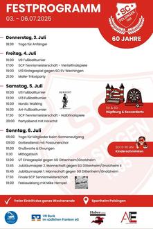 Der Sport-Club Polsingen e. V. feiert am ersten Juliwochenende sein 60-jähriges Gründungsjubiläum. Wir möchten hiermit alle herzlich einladen, bei diesem Fest dabei zu sein.
