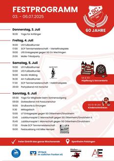 Der SC Polsingen feiert an diesem Wochenende sein 60-jähriges Gründungsjubiläum. Die gesamte Gemeinde ist hierzu herzlich eingeladen.