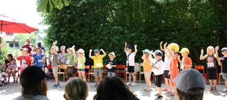 Bei bestem Wetter konnten wir unser diesjähriges Frühlingsfest am 18. Juni 2023 im Kindergarten feiern. Zu Beginn wurden bei einem Bewegungslied alle Fahrzeuge vorgestellt und auf das Thema eingestimmt. Die Vorschulkinder haben mit ihren Sprechrollen die einzelnen Fahrzeuge beschrieben. Außerdem haben die Kinder ein Fingerspiel, einen Klatschvers, Tänze und Lieder vorgetragen. Im Anschluss gab es ein gemütliches Beisammensein mit Kaffee und Kuchen. Danach gab es einige Stationen zum Erkunden. Die Kinder konnten sich schminken lassen, mit der Kübelspritze konnte „Feuer“ gelöscht werden, beim Glücksrad konnte man tolle Gewinne erspielen und Luftballontiere wurden gemacht.