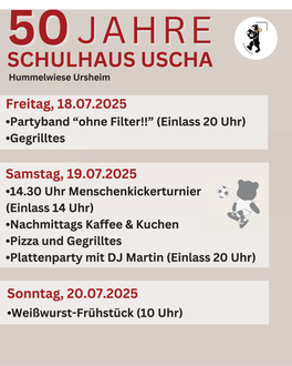 Das Schulhaus Uscha feiert dieses Wochenende das 50-jährige Jubiläum auf der Hummelwiese (Sportplatz Ursheim).