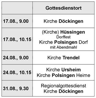 Sie sind herzlich eingeladen, einen Gottesdienst in unserer Pfarrei Hahnenkamm zu besuchen. Wann und wo Gottesdienste stattfinden, erfahren Sie über die Schaukästen vor der Kirche, in unserem gemeinsamen Kirchenboten und hier im Polsinger Gemeindeboten.