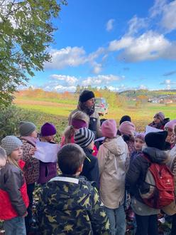 Diese erzählten den Kindern erstaunliche Fakten und interessante Informationen zu den verschiedenen Tieren, die im Wald leben. Die Kinder konnten die Waldtiere anhand von lebensgroßen Bildern betrachten. Hierbei stellten sie Vermutungen zum Aussehen an und untersuchten mitgebrachte Tierpräparate.