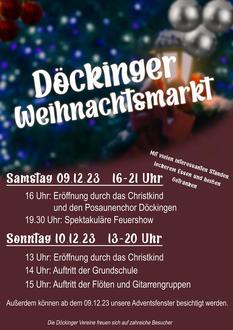 Die Döckinger Vereine laden alle Gäste aus nah und fern, recht herzlich, zum diesjährigen Weihnachtsmarkt im Schulhof ein.