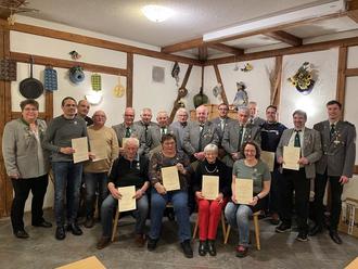 Manuela Rößler begrüßte am 28.01.2023 55 Mitglieder zur Jahreshauptversammlung im Gasthaus „zur Linde“. Nach einem gemeinsamen Abendessen lies Manuela Rößler in ihrem Tätigkeitsbericht die vielen Veranstaltungen 2022 Revue passieren. Im Sportbericht erläuterte Ralf Hager das sportliche Treiben des vergangenen Jahres. Beim Preis- und Königsschießen wurde im Jahr 2022 Christian Tröster zum Schützenkönig, Daniela Hager zur Damenkönigin und Noah Thefelder zum Jugendkönig gekrönt. Beim Ostereierschießen gewannen Emely Stechhammer und Nele Schneid die Tagespreise. Das diesjährigen Sommerfest mit Bürgerschießen fand positive Resonanz und Janine Schrenker wurde zur Bürgerkönigin gekrönt. Auch das Winterschießen wurde wieder gut angenommen und die Wanderscheibe ging an der Weihnachtsfeier an den Jungschützen Dehm Joshua. Beim Gau- und Jugendgauschießen waren wir durch unsere starke Jugend 2022 gut vertreten und konnten dadurch einige Gewinne erzielen. Zuletzt berichtete Ralf Hager noch vom Rundenwettkampf. Aktuell sind zwei Mannschaften beim Gau gemeldet. Die zweite Mannschaft in der E-Klasse belegt momentan den letzten Platz, die erste Mannschaft in der C-Klasse den zweiten Platz. Der stellvertretende Kassier Christian Tröster berichtete im Anschluss erfreut davon, dass die Förderung unserer Schießanlage mittlerweile ausgezahlt wurde. Außerdem betont der Kassenprüfer Julian Schmidt, dass durch viele Veranstaltungen des Vereins eine sehr positive Resonanz gezogen werden kann und eine gute Stabilität vorliegt. In diesem Jahr standen einige Ehrungen an. Für 25 Jahre im Bayerischen Sportschützenbund sowie im Schützenverein wurden Matthias Rößler, Kerstin Schröder, Stefan Dehm, Claus Niederlöhner und Ronny Huber geehrt. Für 40 Jahre bekamen Heinz Sperlich, Peter Müller, Paula Meyer, Karl Stadelmann, Karl Dehm, Gerd Gebert, Heinz Deuter, Martin Guthmann, Werner Gebert, Brigitte Rößler und Heinrich Enser eine Urkunde. Zum Schluss wurde für stolze 60 Jahre Zugehörigkeit Heinz Schmidt geehrt. Neu im Verein aufgenommen wurden Leonie Rottmeier, Jan Rudolf und Rene Imm. Zum Schluss zeigte Manuela Rößler der Versammlung die neuen Vereinsjacken, welche zeitnah bestickt werden und lies hierfür eine Liste herumgehen. Schützenmeisterin Manuela Rößler nannte noch weitere Termine für das Jahr 2023, bedankte sich für die zahlreiche Teilnahme und wünscht allen einen guten Nachhauseweg.