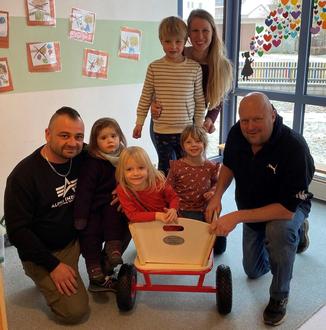 Erneut dürfen sich die Kinder des Döckinger Kindergartens über eine großzügige Spende freuen. Der Erlös von 150€ aus dem Meierhofstraßenfest im Frühjahr 2022 wurde von den Erzieherinnen in einen praktischen Bollerwagen umgesetzt. Nun können auch wieder weitere Ausflugsziele in Angriff genommen werden. Wir bedanken uns ganz herzlich bei allen Besuchern und Organisatoren des Straßenfestes, besonders bei Bernd Färber und Thomas Trautmann für die Unterstützung und die Übergabe der Spende für unseren Kindergarten.