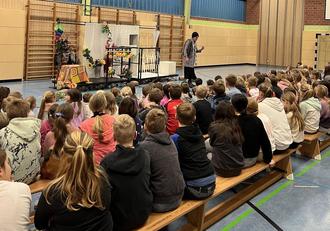 Die Grund- und Mittelschule Hahnenkamm wurde kurz vor Weihnachten von der LUNA-Bühne aus Weißenburg besucht. Dabei konnten die Kinder in Döckingen und Heidenheim von der 1. bis zur 5. Klasse das Weihnachtsstück Frau Dachs und Herr Pinguin ansehen. Dieses Theaterstück basiert auf dem Kinderbuch von Rindert Kromhout und Natascha Stenvert. Es handelt von einer ungewöhnlichen Nachbarschaft, bei der sich zwei Tiere trotz großer Unterschiede respektieren, akzeptieren und lieben lernen.