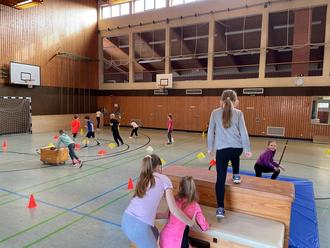 Auch wenn uns der Winter dieses Jahr noch nicht viel Schnee beschert hatte, konnten sich die Grundschulkinder der 1. und 2. Klasse und ihre Gäste, die Vorschulkinder aus den umliegenden Kindergärten, auch dieses Schuljahr wieder beim Wintersport in den Turnhallen in Döckingen und Heidenheim an verschiedenen Stationen in Wintersportdisziplinen ausprobieren. Diese waren spannend und anstrengend zugleich und ließen die Zeit wie im Nu verstreichen. Schlitten fahren, Buckelpiste, Bob fahren, Eishockey sowie Eisschnelllauf – natürlich alles ohne Eis und Schnee – gehörten zu den Übungsaufgaben und wurden von allen mit Bravour gemeistert.