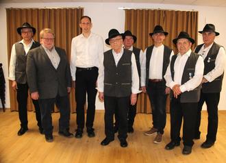 komplette Siebener-Mannschaft: v. r. Obmann Martin Guthmann, Georg Niederlöhner, Gerd Deuter, Ernst Tröster, Siegfried Saur, Bernd Hüttinger, Bürgermeister Heinz Meyer, Michael Meyer