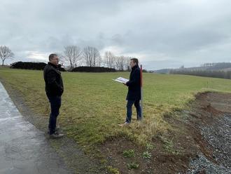 Bauamtsleiter Andreas Schorn (links) und Bürgermeister Stefan Heinlein freuen sich über den Abschluss der Bauleitplanung in Marienroth. Hier entstehen vier Bauparzellen auf rund 2.000 Quadratmetern - ein wichtiger Beitrag für die wachsende Gemeinde.