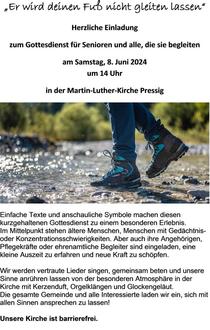 | 14 Uhr | Gottesdienst für Senioren und alle, die sie begleiten |