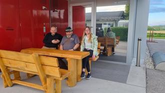 Überraschend erhielt Bürgermeister Richtsteiger einen Anruf. "Lola" - Gerhard Deuerling - ein Pressiger Urgestein war am Telefon, welcher mitteilte, dass er kurzerhand wie an der Partnerschaftsfahrt versprochen nach Wallern gekommen sei. Als Zeichen der Freundschaft, baute er für eine wundervolle Sitzgarnitur aus Holz, welcher er kurzerhand gemeinsam mit Sonja Kaim vorbeibrachte.