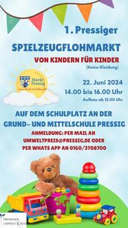 Dann aufgepasst! Dieses Jahr findet zum ersten Mal ein ganz besonderer Spielzeugflohmarkt VON KINDERN FÜR KINDER auf dem Schulplatz an der Grund- und Mittelschule in Pressig statt!