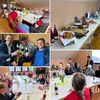 Auch durch einige Regentropfen ließ man sich nicht entmutigen und zog kurzerhand ins örtliche Feuerwehrhaus um. Nahezu jeder Haushalt hatte zu dem gemütlichen Nachbarschaftstreffen einiges eingebracht. So mangelte es weder an Kaffee, selbstgebackenen Kuchen und Gebäck noch an leckeren Wurst- und Käsehäppchen oder anderen „diversen Kreationen“, die die eine oder andere Hausfrau auf Lager hatte.